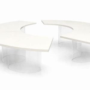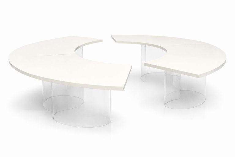 Mesa tampo curvo off white pés acrilico quantidade