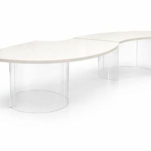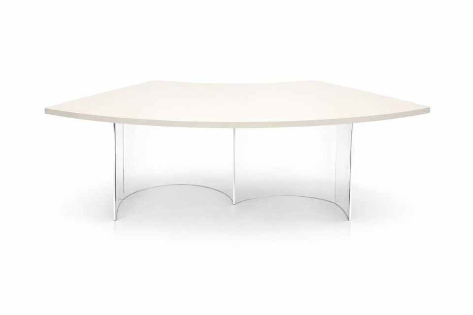 Mesa tampo curvo off white pés acrilico